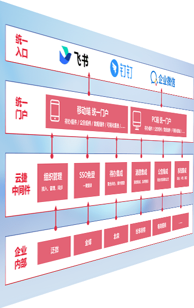 对协作平台提供支持服务,,支持企业应用与协作平台对接,,,包含组织同步、、、、消息集成、、、、待办集成等。。支持目前主流的协作平台:钉钉、、企微和飞书。。。。